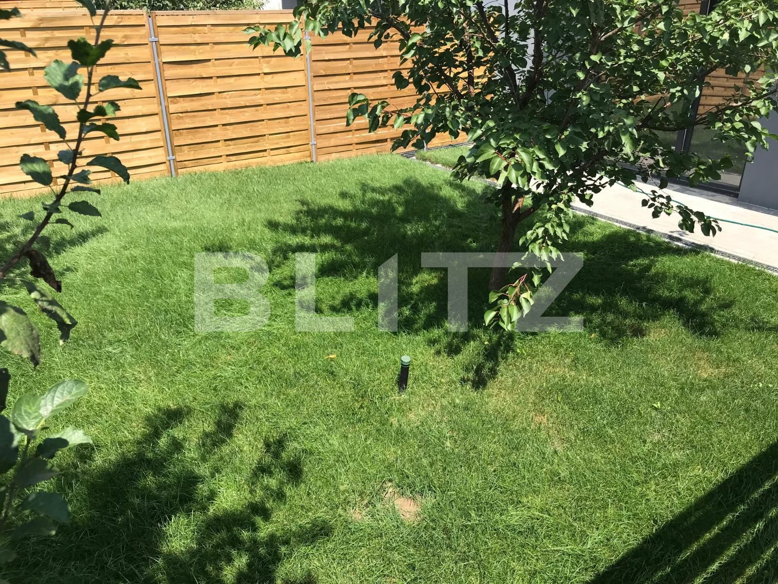 Suprafata de teren aferenta imobilului este de 100 mp. Gradina este amenajata cu gazon si pavaj.