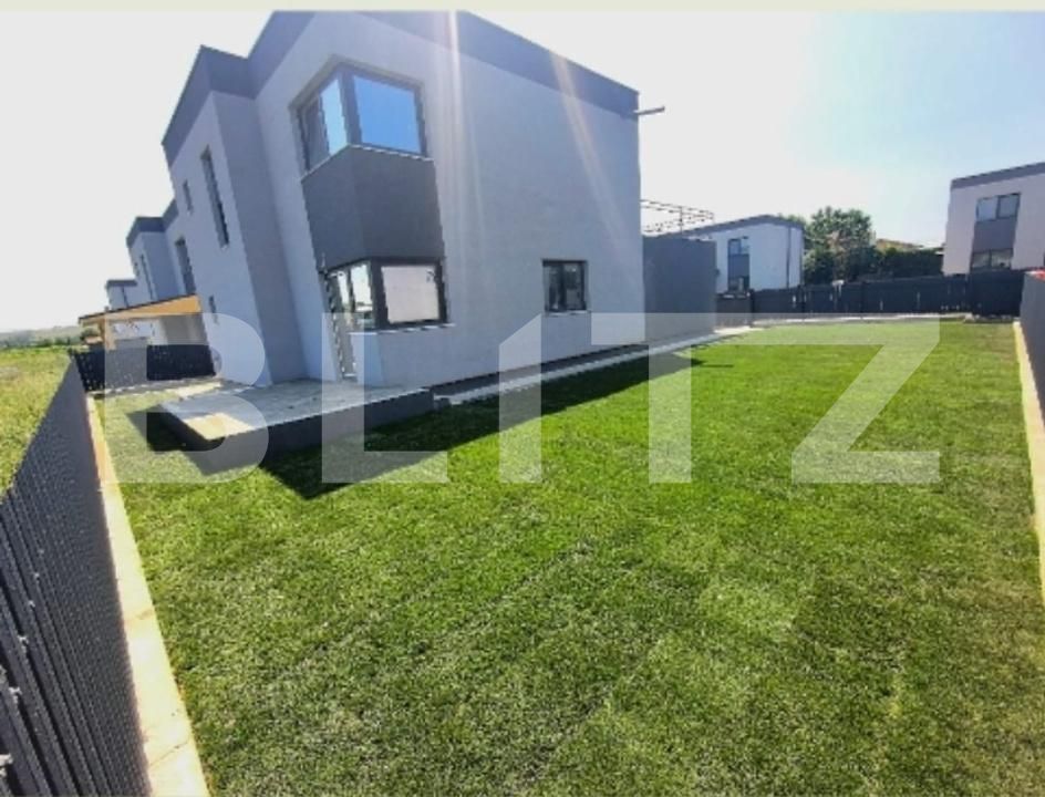 Blitz oferă spre vânzare casa individuala, 120 mp utili si 400 mp teren, intr-un ansamblu de case unitar si armonios proiectate, la câteva minute de Cluj-Napoca., zona intrare Jucu. Proprietatea construita si finalizata in 2024, are pereții din cărămida cu izolație exterioara, ferestrele si usa intrare tamplarie PVC si sticla termoizolanta , parcare acoperita. Imobilul este dispus pe doua niveluri, P+E, având următoarea compartimentare: Parter : hol, bucătărie separata, cămara, living, baie de serviciu; Etaj : 3 dormitoare, 1 baie, doua dressing-uri. Dormitorul matrimonial are ieșire pe o terasa panoramica de 18,5 mp, însorită pe tot parcursul zilei. Se vinde la stadiul de semifinisat, cu sapa, pereți gletuiti, un rand de lavabila, instalații la poziție, centrala termica pe gaz, încălzire in pardoseala. Curtea este amenajata, gazon, trotuare si de acces cu pavaj , gard metalic, poarta acces auto automatizata. Imobilul este poziționat într-o zona liniștită, retrasa de zgomotul și poluarea orașului, dotata cu facilitățile unei zone rezidențiale moderne, utilități (branșamente de apa, gaz, canalizare ) strada privata, cu iluminat stradal !