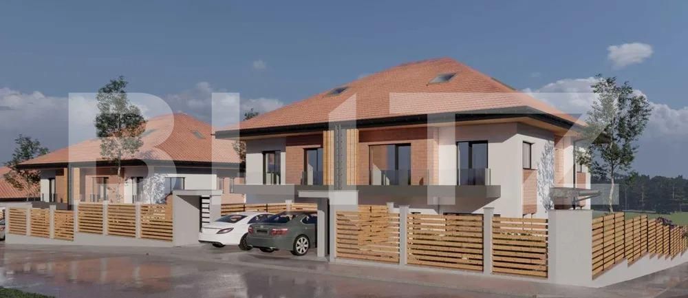 Casa premium semifinisata cu geam panoramic, garaj si teren 786mp