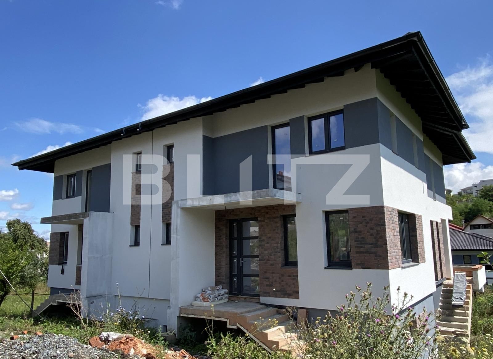 Extraspatiu de depozitare, in pod, sub acoperisul de tip sarpanta invelit cu tigla cat si depozit sub casa scarii. Pentru a putea fi personalizata asa cum iti doresti, casa se preda la stadiul de semifinisat, cu centrala termica proprie si incalzire in pardoseala, geamuri panoramice triplex, instalatii trase la pozitie, cu sapa si peretii tencuiti si dispune de toate utilitatile: canalizare, apa curenta, gaz si curent.