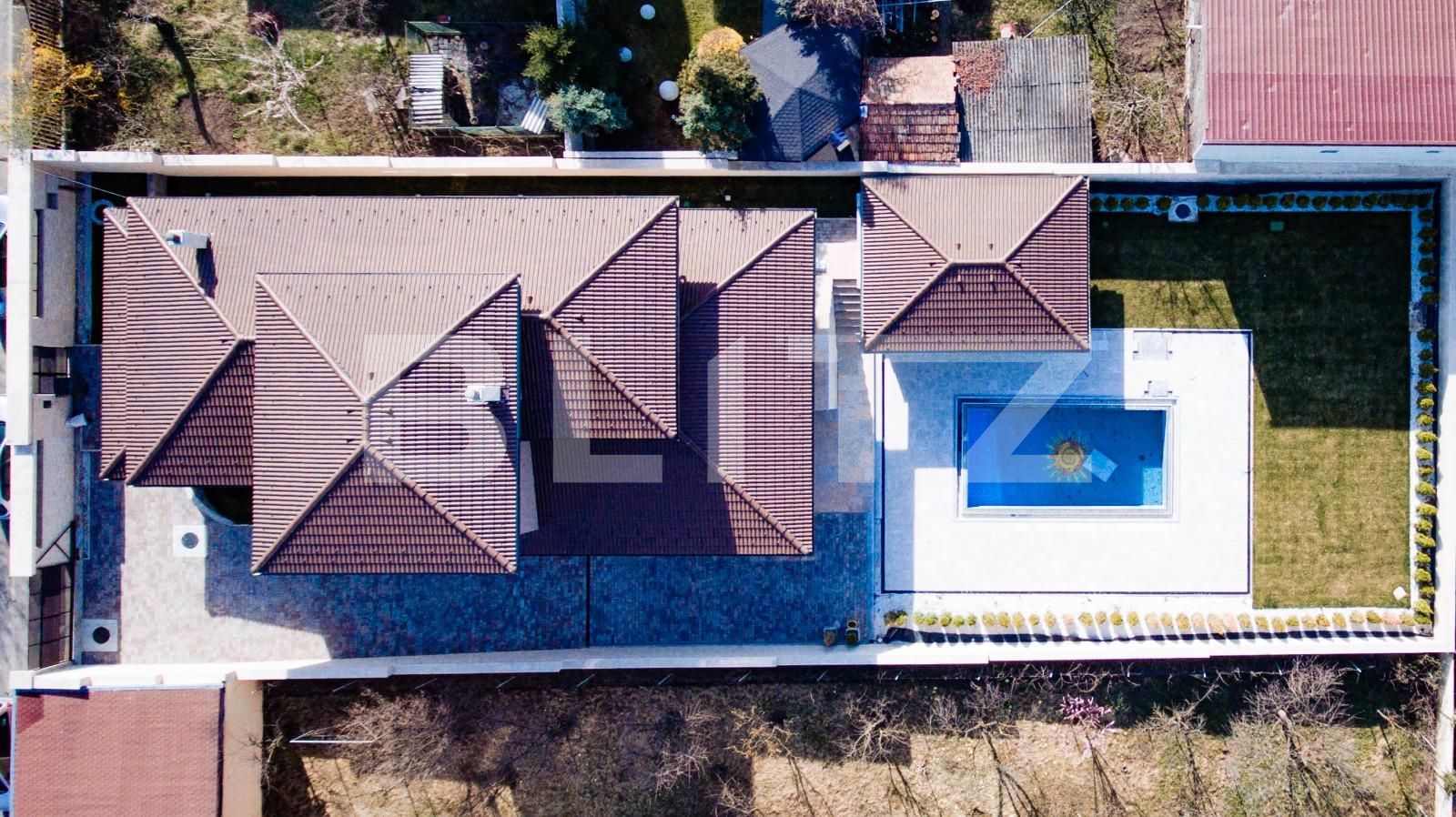 Curtea este amenajata cu gazon ce dispune de instalatie de irigat. Zona de recreere are o piscina functionala si un foisor ca sa va bucurati din plin de Soare pe parcursul intregului sezon cald. Proprietatea se vinde la stadiul de semifinisat la interior ceea ce va ofera posibilitatea sa o amenajati dupa propriile gusturi si sa va lasati amprenta pesonala, iar exteriorul este complet finisat. Cand doriti sa mergem la vizionare?