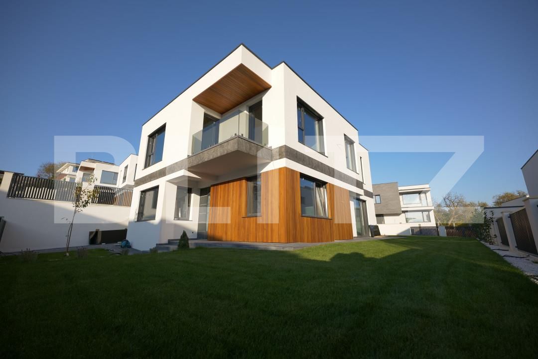 Vila Smart Home de vânzare oferită de BLITZ are o suprafață construită 437,54 mp și o suprafața utilă de 323 mp utili, pe un teren de 540 mp, amplasată în complexul exclusivist de 4 vile Bellevue. Casa a fost finalizată în 2024, cu regim S+P+E, și include un living spațios, birou, bucătărie deschisă cu dining, playroom și Home Cinema la subsol, 4 dormitoare, 4 băi, 2 dressinguri, o saună uscată, spațiu tehnic, depozitări, balcon, bibliotecă la etaj și un garaj.