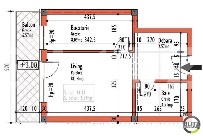 Suprafață utilă: 33.31 mp