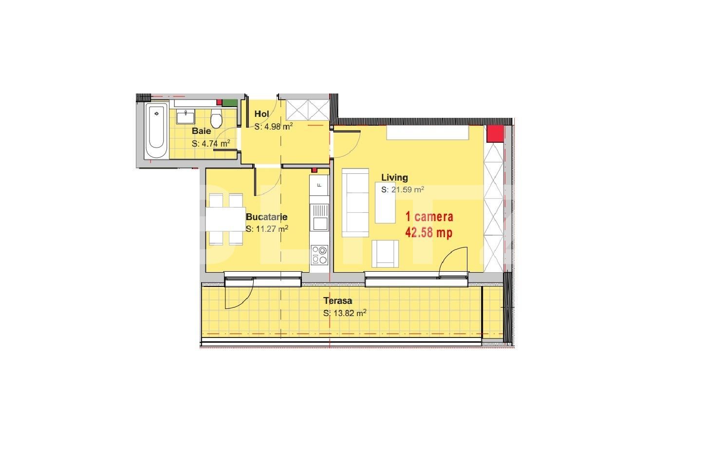 Suprafață utilă: 42.58 mp