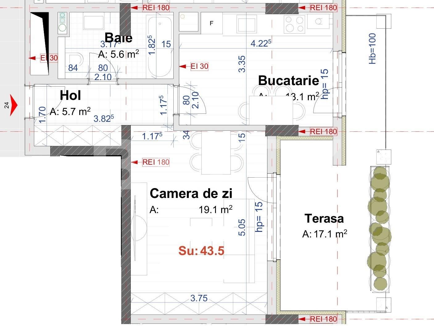 Suprafață utilă: 43.5 mp