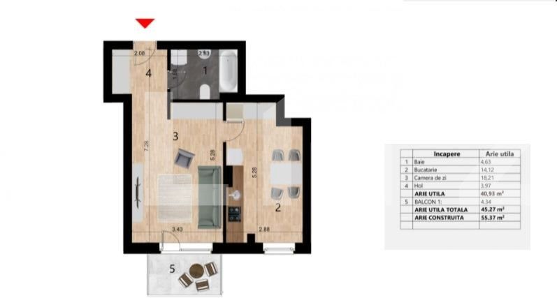 Suprafață utilă: 40.93 mp