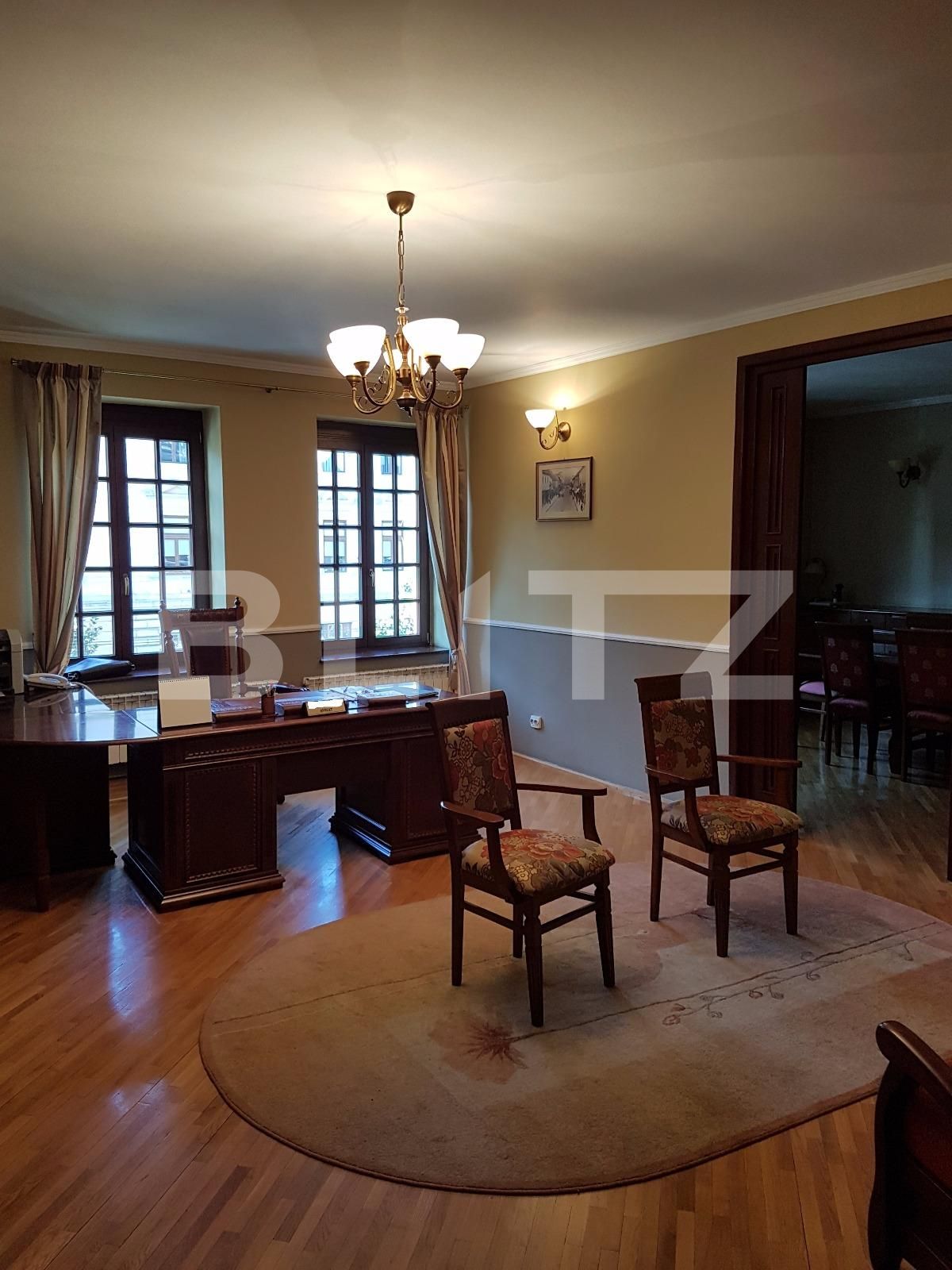 Spatiu pentru birouri in suprafata totala utila de 140 mp. Spatiul are in componenta 5 incaperi, 1 oficiu, 1 hol si 2 toalete. Spatiul este localizat la etajul 1 al unui imobil istoric din centrul orasului. Spatiul va fi predat complet mobilat si finisat. Pretabil pentru orice activitate de birou, cabinete de avocatura, notariale, etc. Spatiul este ultrafinisat, impecabil pentru desfasurarea unei activitati de birou.