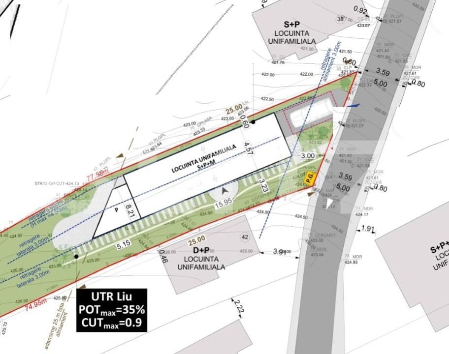 Blitz oferă spre vânzare o parcela de teren intravilan, situat in cart ANDREI MURESANU din Cluj-Napoca.Suprafața parcelei este de 560 mp având un front de 12 si acces direct din drum public asfaltat.Conform Pug Cluj-Napoca, terenul este încadrat in UTR-Liu- Zona este caracterizată de funcţiunea rezidenţială de densitate mică (predominant locuinţe unifamiliale).P.O.T. maxim = 35%, C.U.T. maxim = 0,9 regimul de construcție este permis-(S) +P+1+R. Terenul este in autorizare pentru construcția unei case individuale , in suprafata construita desfasurata de 158 mp ! S-a demarat procedura pentru obținerea unei autorizații de construcție având deja certificat de urbanism aprobat ! Pentru continuarea proiectului se asigura suportul arhitectului pentru finalizarea proiectului , planșe de arhitectura, documentațiile tehnice, avizările aferente ! Pentru mai multe detalii va stam la dispoziție, va așteptăm cu drag la vizionare !