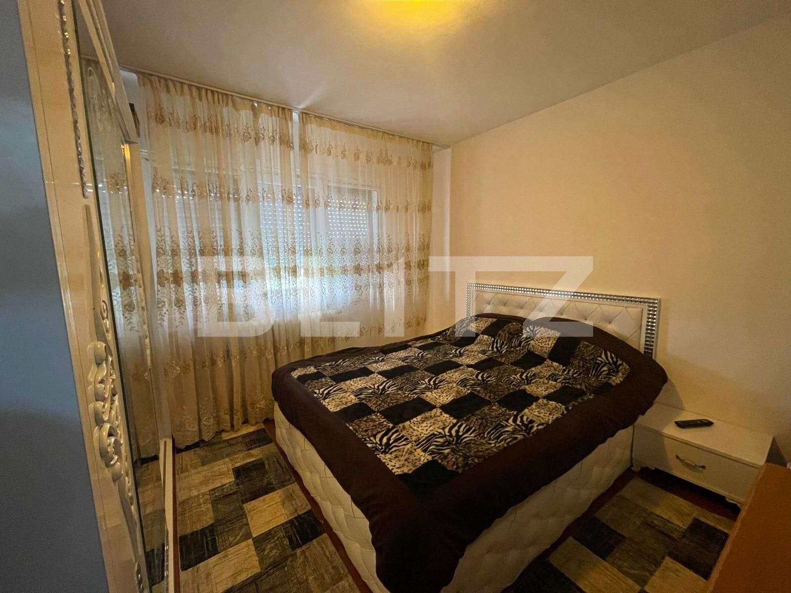 Apartamentul este pozitionat intr-o zona foarte linistita, este decomandat fiind compartimentat astfel: hol, bucatarie, sufragerie, dormitor, baie, dispune de termopane si usa metalica la intrare. Acoperisul blocului este construit in doua ape.