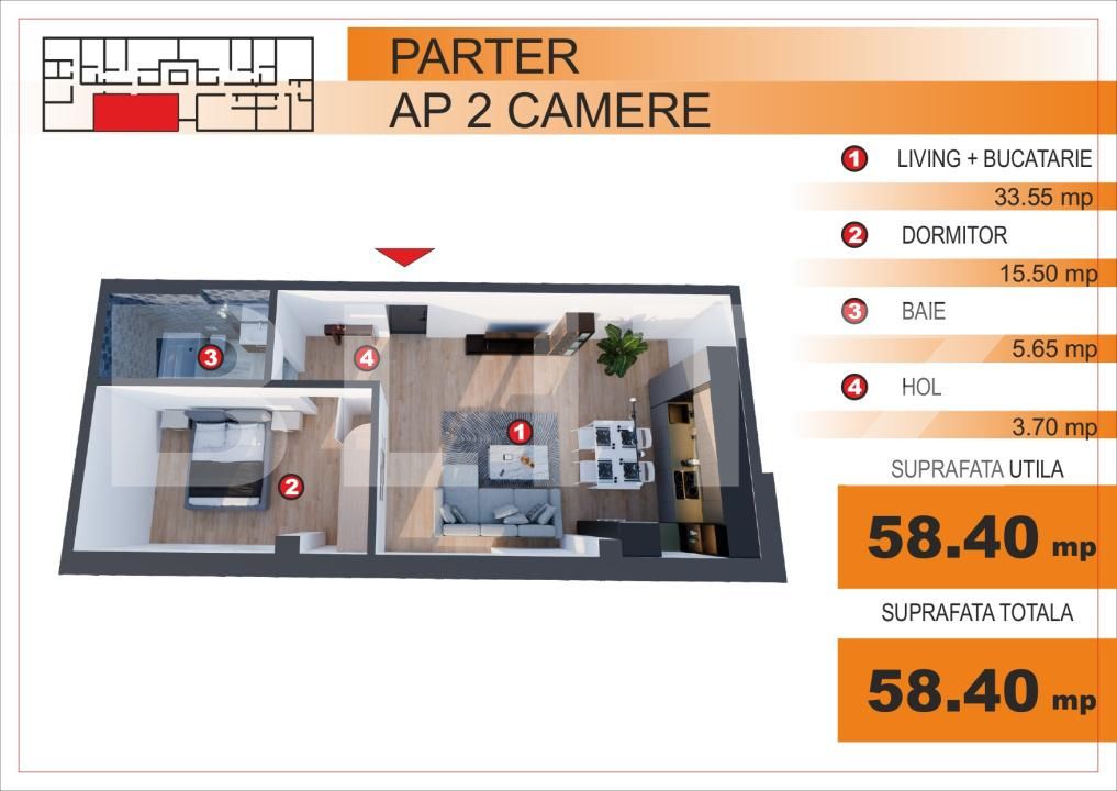 Suprafață utilă: 58 mp