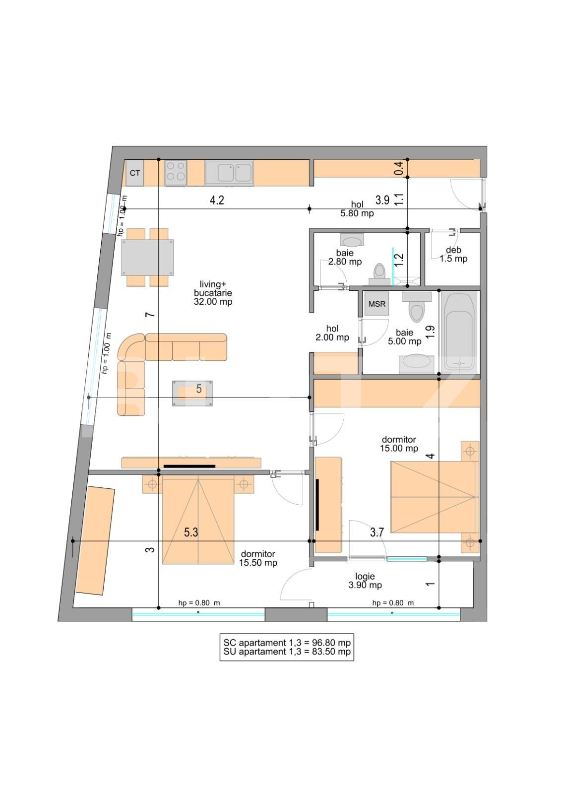 Suprafață utilă: 83.5 mp