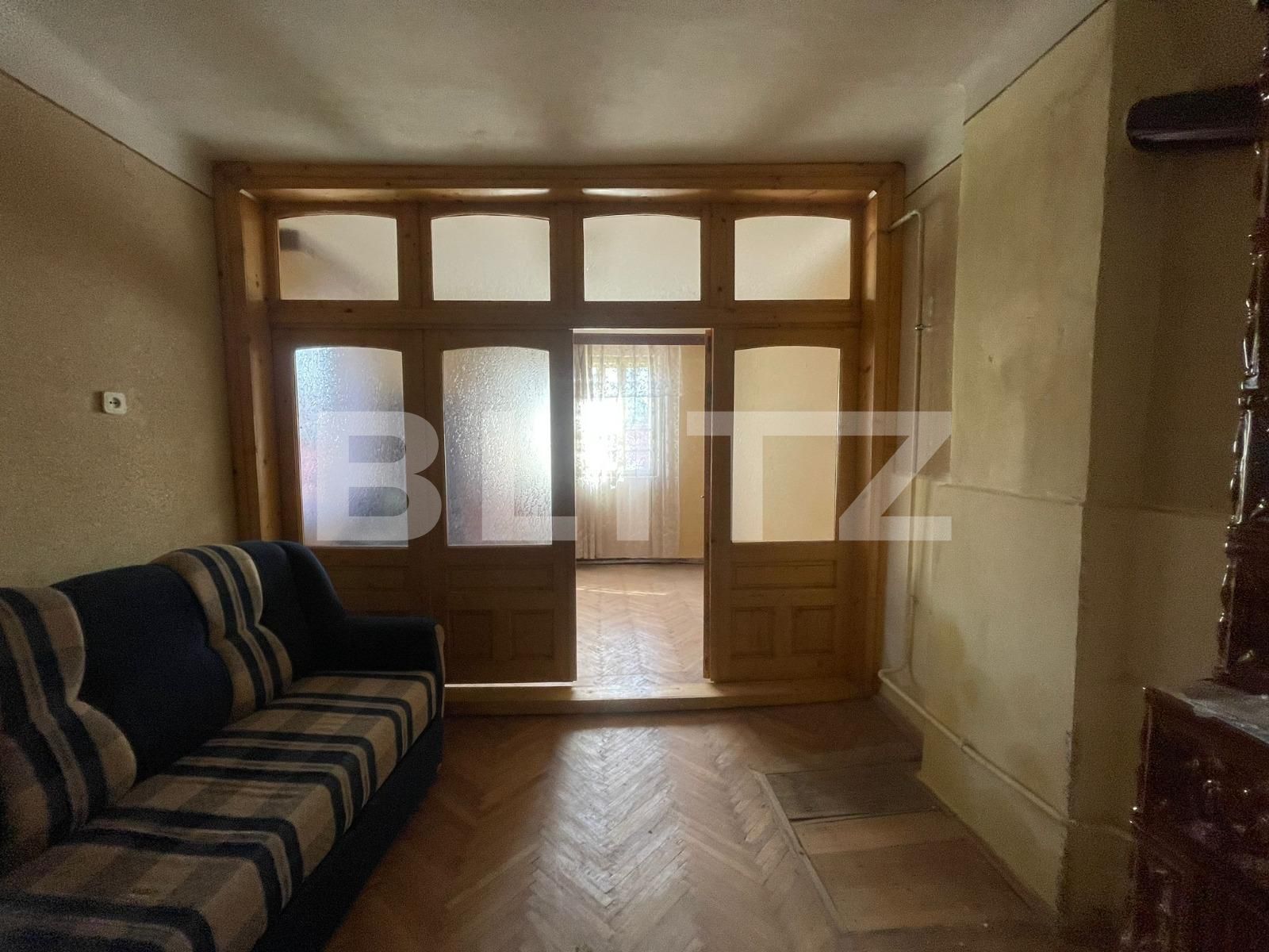 Blitz propune spre achizitie o casa renovabila sau demolabila situata central si desfasurata pe plan parter, cu o suprafata utila de 75 mp utili, avand teren cu suprafata de 143 mp si deschiderea de 7.18 ml. Locuinta este decomandata si realizata astfel: hol de intrare si 3 dormitoare si sufragerie, bucatarie si baie. Dotata cu pod, pivnita si o anexa construita separat pentru depozitare in curtea din spate. Constructia este din caramida, iar acoperisul este din tabla.