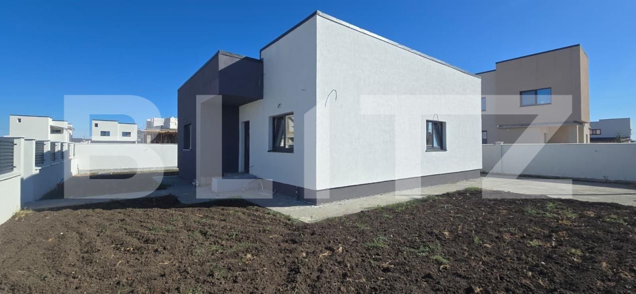 Constructie noua, realizata din BCA, amplasata pe un teren de 473 mp, prevazuta cu terasa si 2 locuri de parcare. Casa are o suprafata utila de 105 mp , compartimentata astfel : living generos cu bucătărie inchisa, 1 baie, 2 dormitoare, dintre care dormitorul matrimonial beneficiază de baie proprie, dressing și ieșire directă către terasă acoperita.
