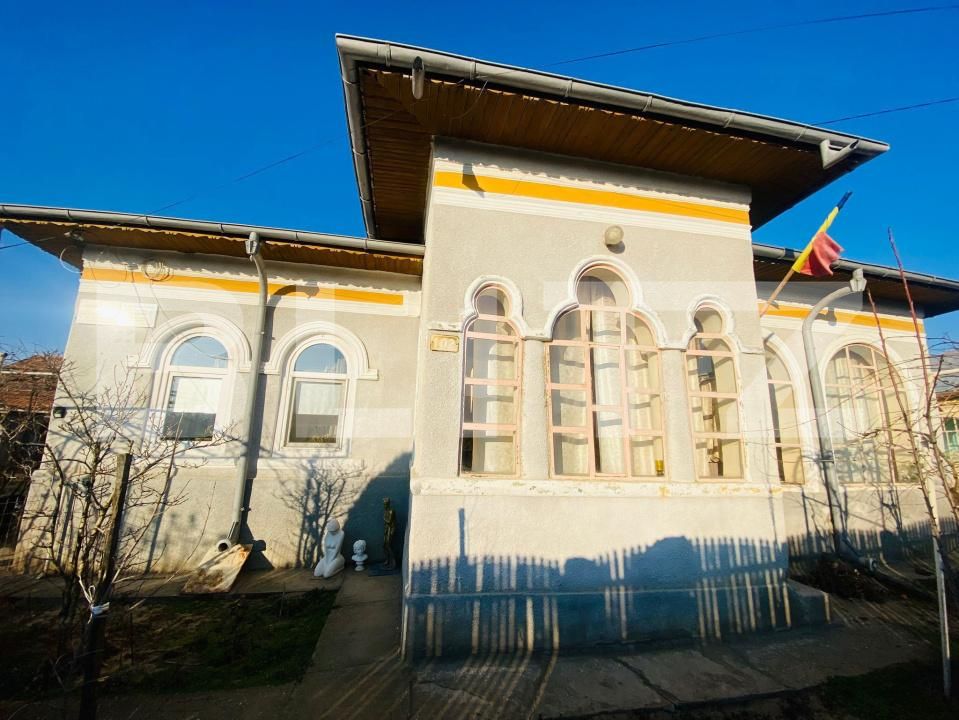 Terenul este impartit in 2 parcele, prima care are si deschidere la drum de aprox 33 ml, pe care este situata casa si cateva anexe + un garaj, iar a doua, cea din spate, de 1.100 mp , dispune de o livada de pomi fructiferi, vita de vie si multa verdeata. Casa este construită din cărămidă, situată într-o zonă liniștită, ideală pentru o familie.