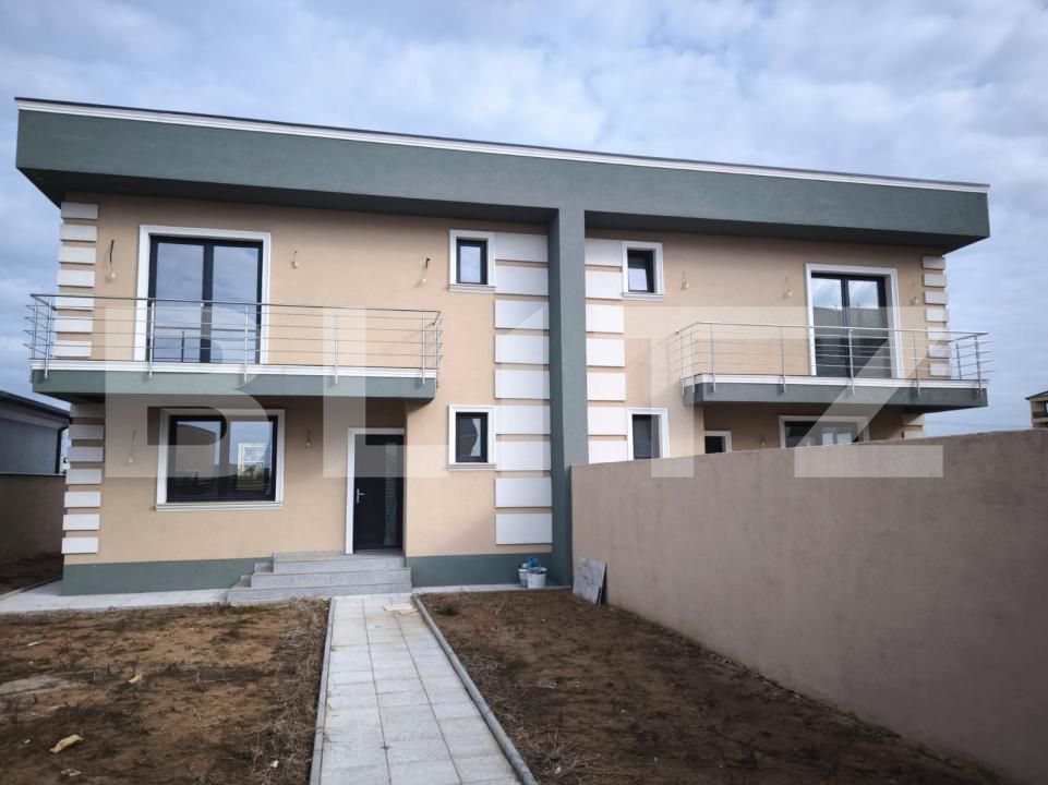 Constructia este calitativa cu fundatie si stalpi din beton armat, zidarie din BCA de 25,(cu exceptia peretelui despartitor care este de 35). termoizolatie cu polistiren de 10, tamplarie din geam termopan tripan, acoperis din tigla metalica, finisaje bune si gard zidit.