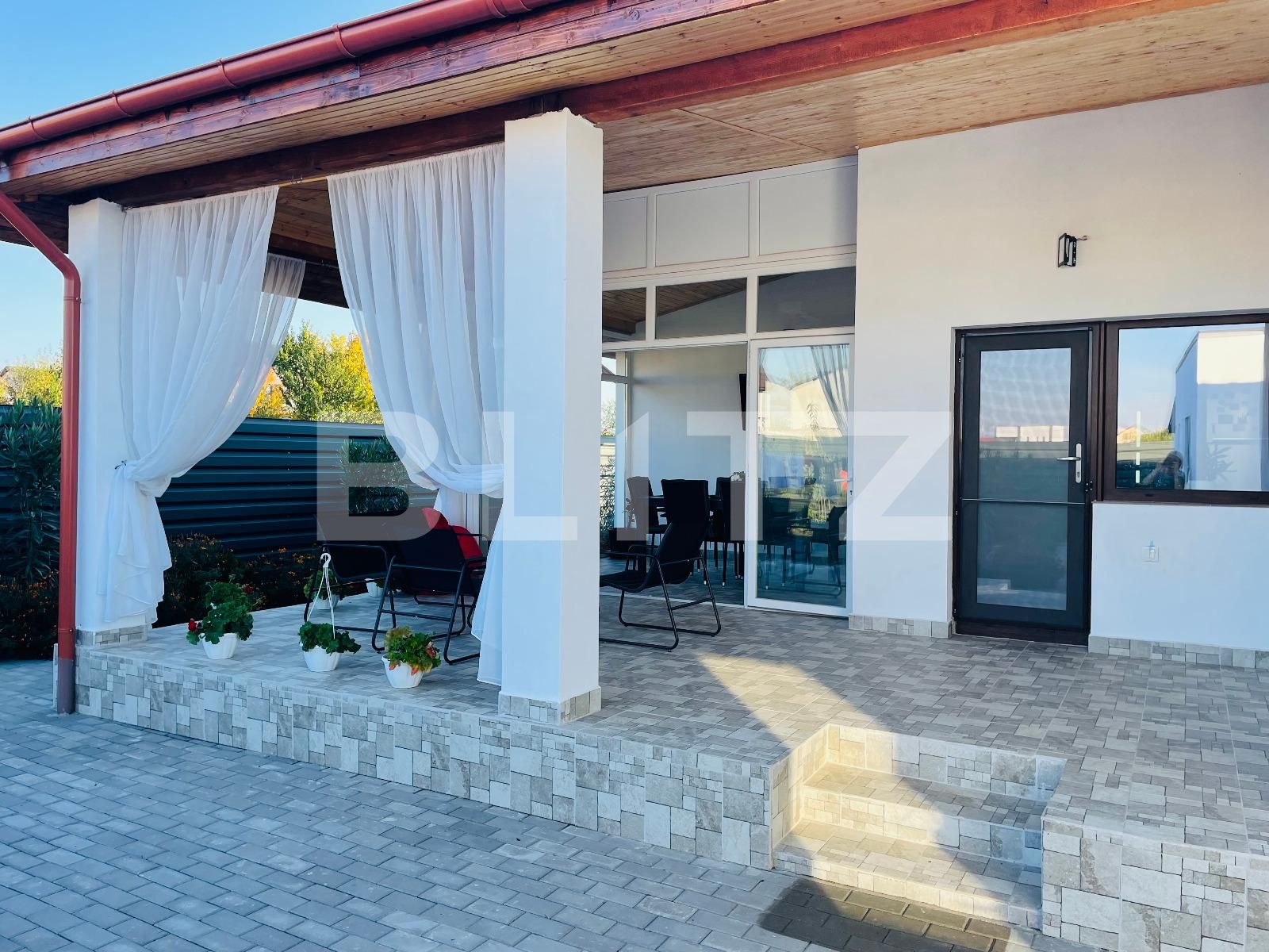 Casa se vinde la cheie, complet mobilată și utilată cu mașină de spălat, uscător de rufe, mașină de spălat vase, aer condiționat Gree 18000 BTU, sistem wi-fi 3 zone, televizoare generație nouă cu diagonala de 165 cm.