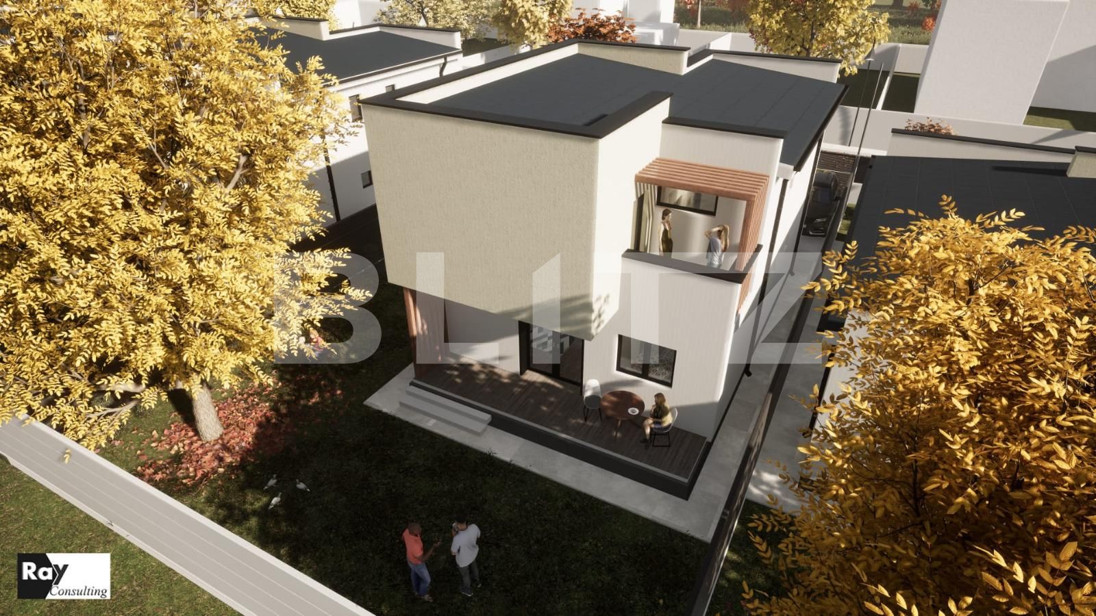 Blitz propune spre vanzare casa P + E de 113 mp utili si 398 mp teren in zona Aeroportului ce va putea fi accesata direct din Calea Bucuresti. Casa este compartimentata dupa cum urmeaza: la parter avem zona de living dining si bucatarie intr-un open space generos un dormitor de oaspeti/birou o baie si holul cu casa scarii cu iesire pe o terasa acoperita de 16 mp, iar la etaj gasim 3 dormitoare, dintre care unul matrimonial cu dressing baie separata si balcon si o a 3-a baie pentru celelalte doua dormitoare. Imobilul va beneficia de toate utilitatile acces pe alei asfaltate de 9 m cu trotuare si spatii verzi aflandu-se intr-un frumos ansamblu rezidential, iar materialele folosite si manopera de executie respecta standarde inalte de calitate (termopane QFort tripan incalzire in pardoseala pe ambele niveluri finisaje de top District Design). Pentru mai multe detalii si urmarirea evolutiei constructiei te asteptam la vizionare.