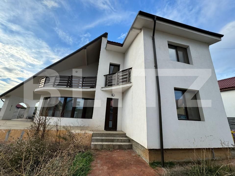 Constructie realizata in anul 2017, din BCA, izolata cu politiren de 10 CM, acoperita cu tabla metalica, tamplarie PVC, avand o amprenta la sol de 145 mp si o suprafata utila de aproximativ 200 mp, incalzita cu ajutorul unei centrale pe peleti.