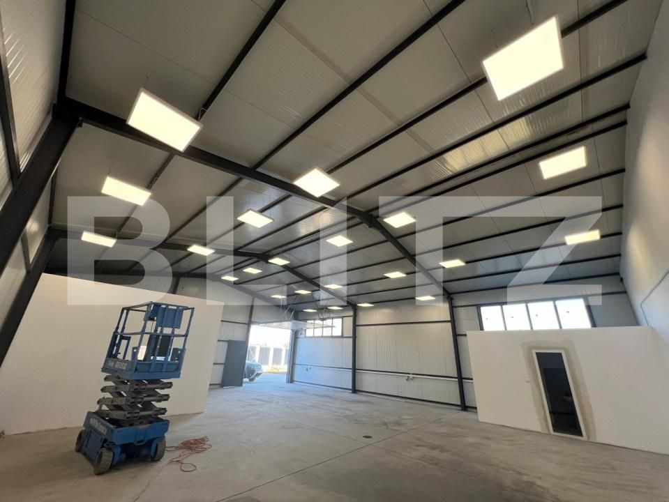 Dotata cu curent trifazat, ideal pentru echipamente, compartimentare open space, dispunde de birou si 2 grupuri sanitare, teren imprejmuit, toate aceste caracteristici fac din acest imobil unul pretabil pentru activitati de tip depozitare, productie mica, service auto etc.