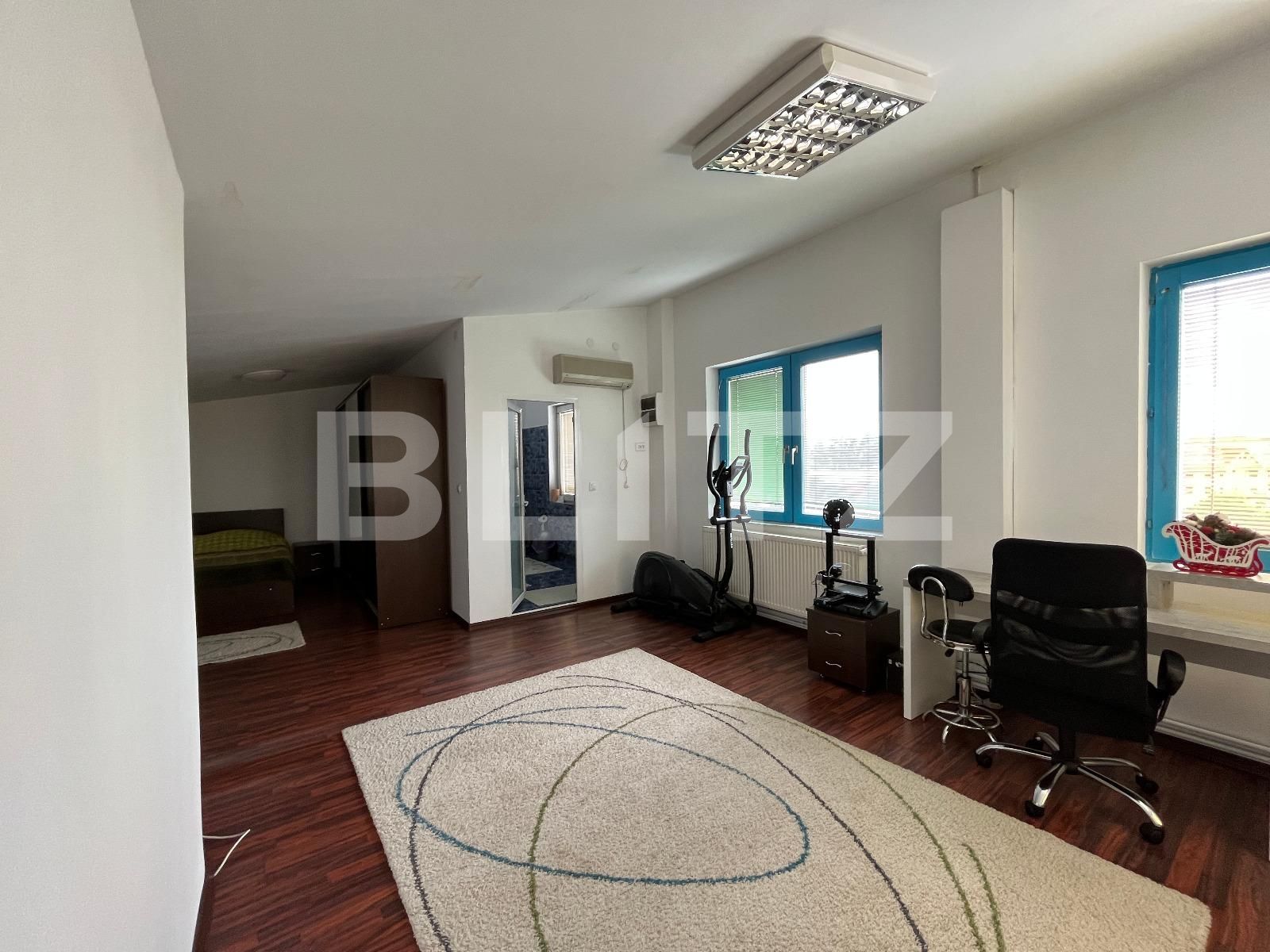 Proprietatea beneficiază de toate utilitățile, curent trifazic, centrale termice și partide separate pentru clădire și hale, reprezentând astfel o opțiune foarte bună pentru mai multe tipuri de afaceri: showroom cu depozit, spații de producție cu desfacere, locuințe colective ș.a.