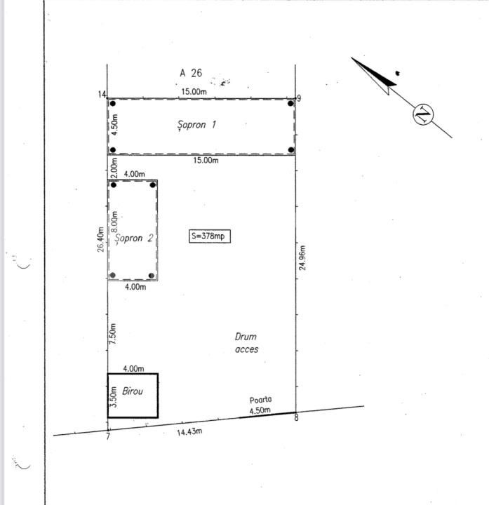 - C2 – șopron 1, cu o suprafață de 67,5 mp (15 m x 4,5 m).