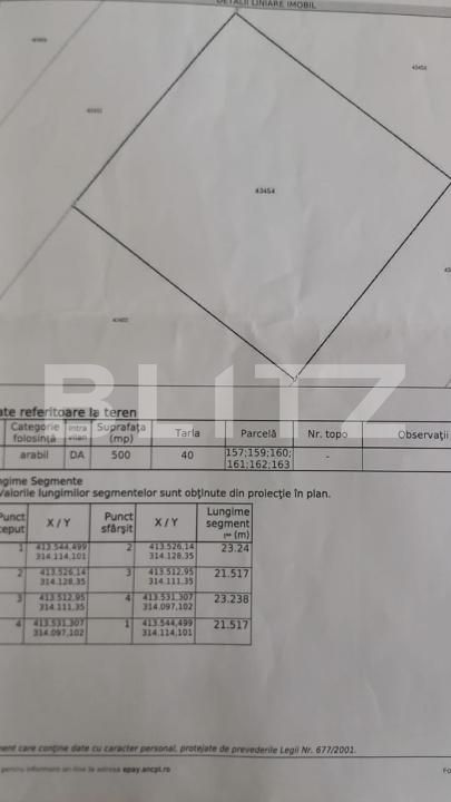 Blitz va propune spre achizitie un teren intravilan cu suprafața de 500 mp și front stradal generos de 21,5 m, situat în zona Peugeot Pielești.