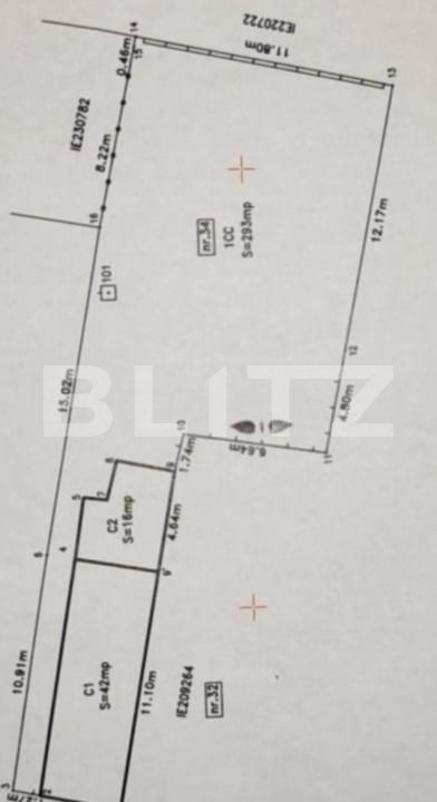 Terenul în partea din fata are o deschidere de 5 m unde se afla și o construcție demolabila, în partea din spate se lărgește la 12 m.