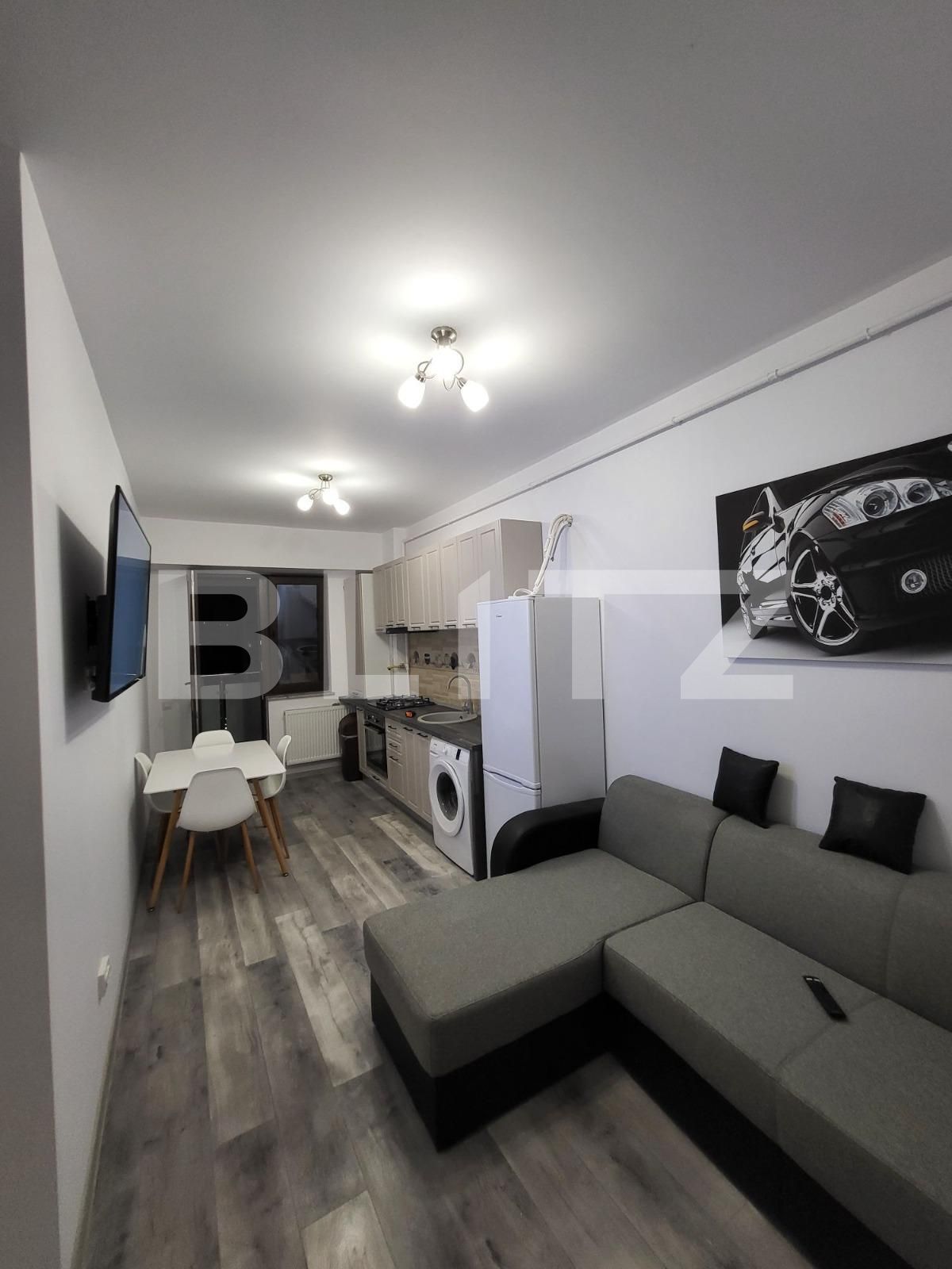 Blitz va ofera spre inchirere un apartament de 2 camere situat in zona Palas, in aproprierea mijloacelor de transport in comun si a magazinelor. Apartamentul este situat la etajul 5 intr-un imobil cu 8 niveluri si dispune de o suprafata utila de 40mp. Compartimentarea este una semidecomandata si dispusa astfel: living de tip open space cu bucataria, camera, baie si hol. Apartamentul dispune de centrala termica proprie si se ofera spre inchiriere complet mobilat si utilat. In pretul afisat este inclus si un loc de parcare.