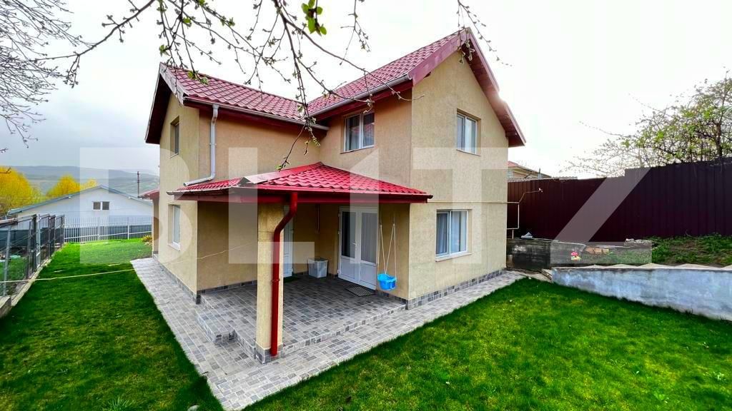 Lumină și spațiu generos: Ferestrele mari cu tâmplărie termopan permit pătrunderea abundentă a luminii naturale în interior, creând o atmosferă luminoasă și primitoare. Frontul principal orientat spre sud contribuie și el la confortul termic și luminos al casei.