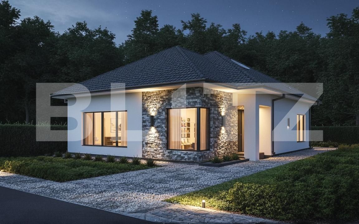 Blitz va ofera spre vanzare o casa spatioasa si calduroasa in zona Paleului. Casa dispune de o suprafata utila de 140mp, asezata pe un teren cu o suprafata de 500mp. Compartimentarea proprietății vă oferă confortul a 4 dormitoare, din care unul matrimonial cu baie și dressing, un birou, o cameră tehnică și o cameră de zi open-space cu bucătărie de aproximativ 55mp. Pe langa un proiect cu mult gust, panorama spre dealurile Paleului este nedescris de frumoasa. Proprietatea dispune de toate utilitatile, si anume, apa, canalizare, curent, si gaz, iar in proximitatea locuintei se afla statia de autobuz spre Oradea, pentru cei care au copii la scoala in oras. Lucrarile la casa continua, si proprietarul este dispus sa lucreze cu noii cumparatori pentru a personaliza proprietatea dupa gustul acestuia.