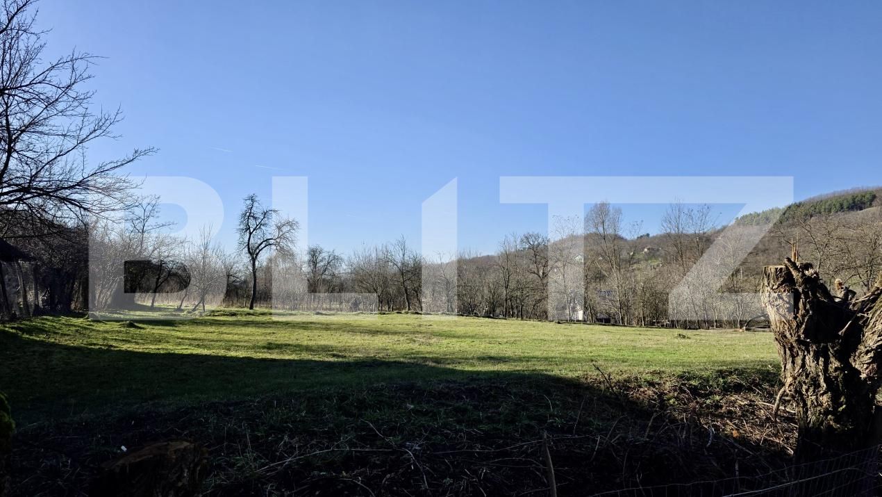 Terenul are o suprafață totală de 4.549 mp, conform documentației cadastrale, și beneficiază de acces din drum cadastral, aspect esențial pentru autorizarea unei construcții. Forma terenului permite delimitarea unei zone optime pentru amplasarea unei case, restul suprafeței putând fi utilizat ca grădină, livadă sau zonă verde.