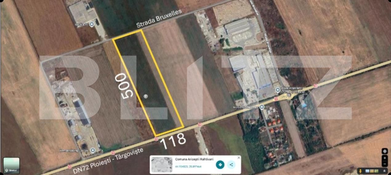 Blitz va propune spre vânzare spre vânzare teren strategic cu potential foarte mare in zona industrială cu suprafeța de 5,90 hectare cu ieșire la DN72 Ploiești - Târgoviște, într-o zonă aflată în plină dezvoltare, la 6 km de Ploiești, în comuna Ariceștii Rahtivani.