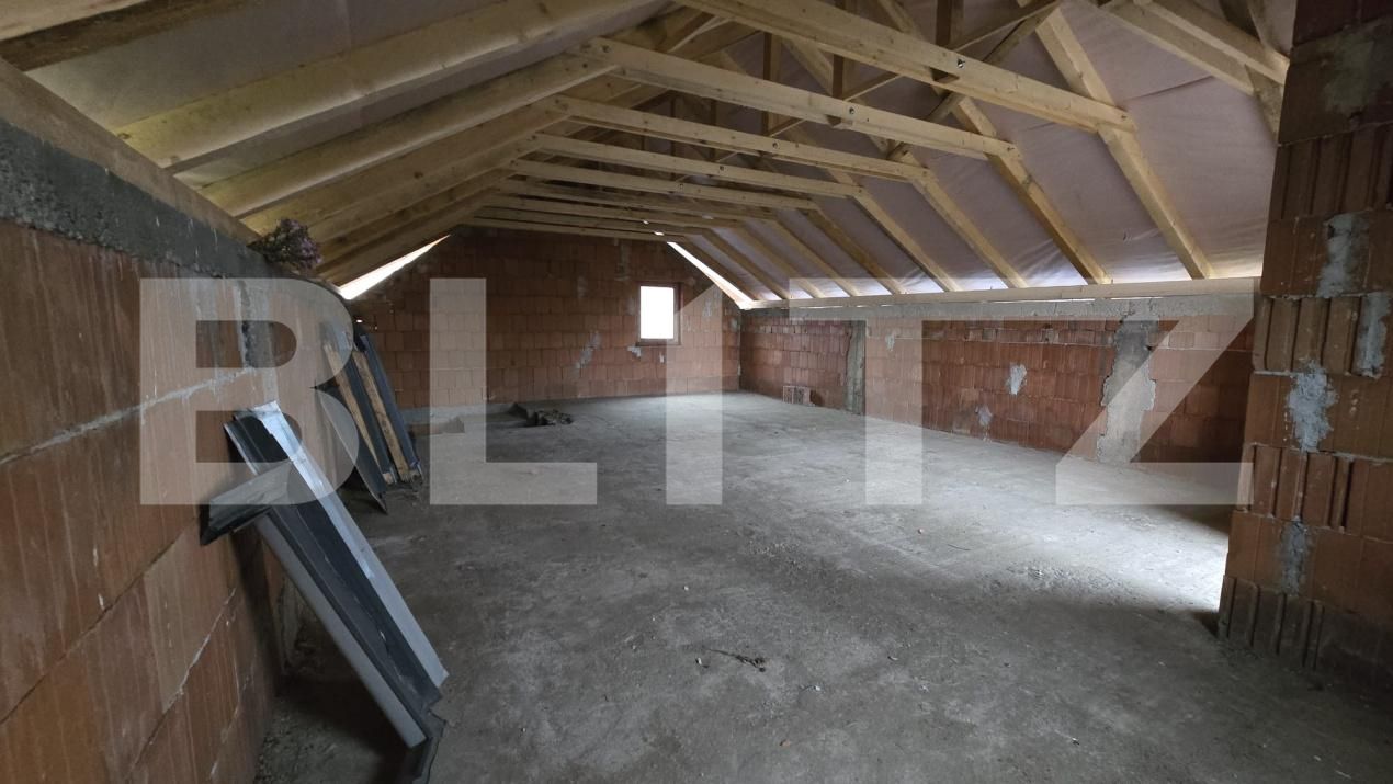 Blitz propune spre vânzare o casă din cărămidă aflată în stadiu de construcție, structură P+1E, cu suprafață construită de 191,5 mp și teren de 471 mp. Imobilul include garaj alipită cu acces direct în casă.
