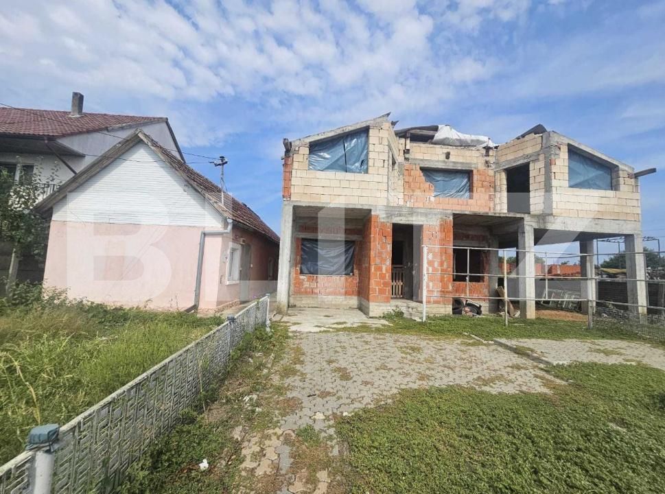 -o casă la roșu, P+M, așa cum se vede în poze, ce oferă un bun punct de plecare pentru finalizarea unei locuințe confortabile.