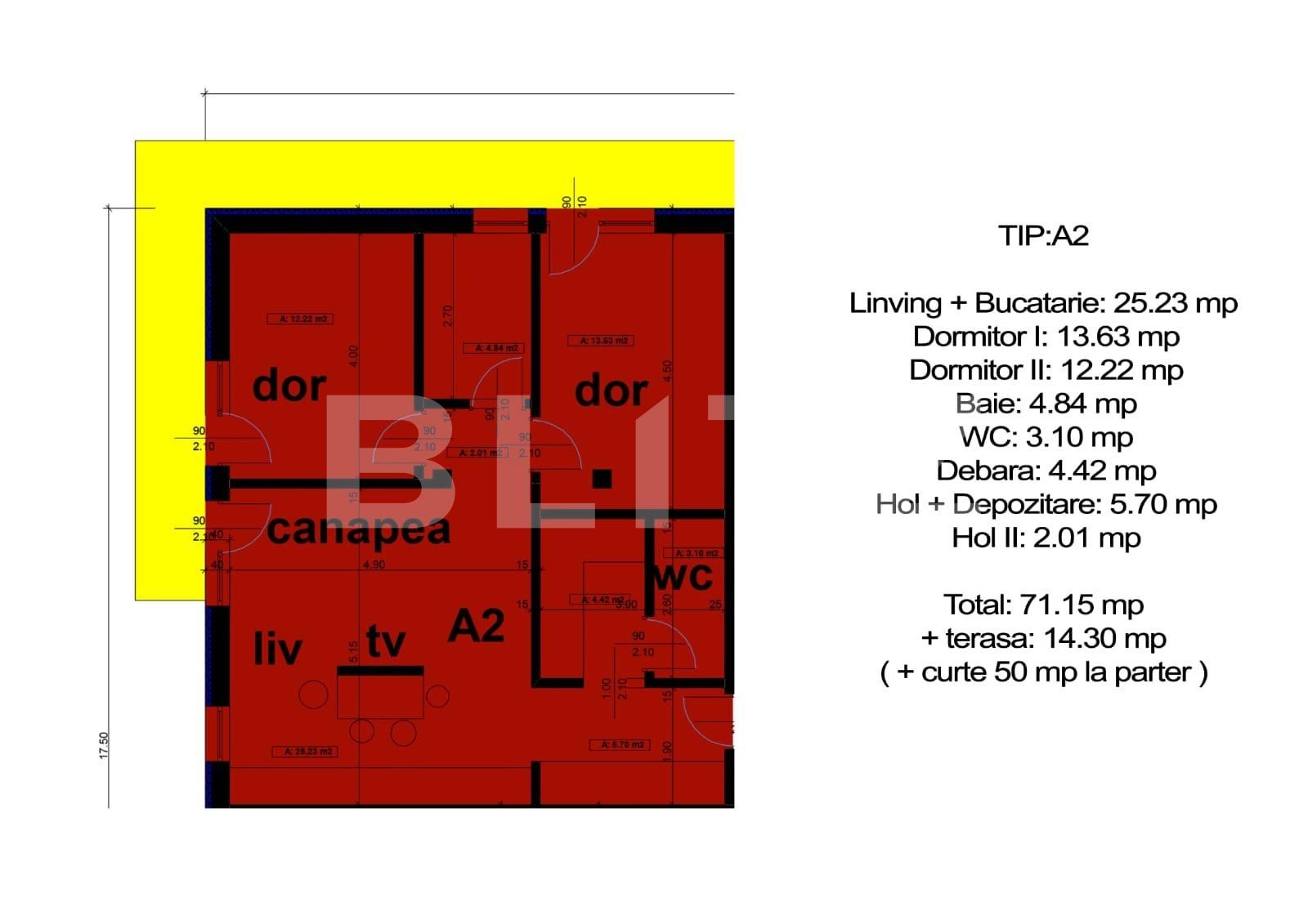 Suprafață utilă: 71.15 mp