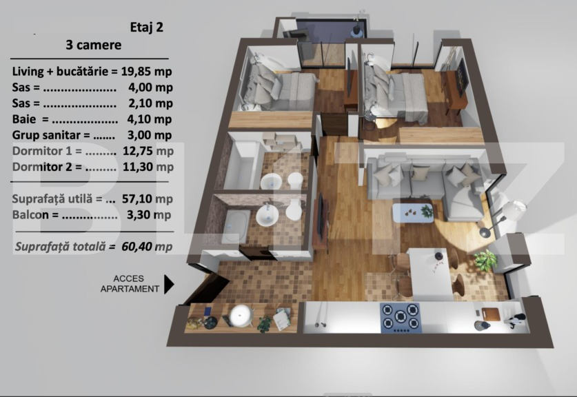 Suprafață utilă: 57.1 mp