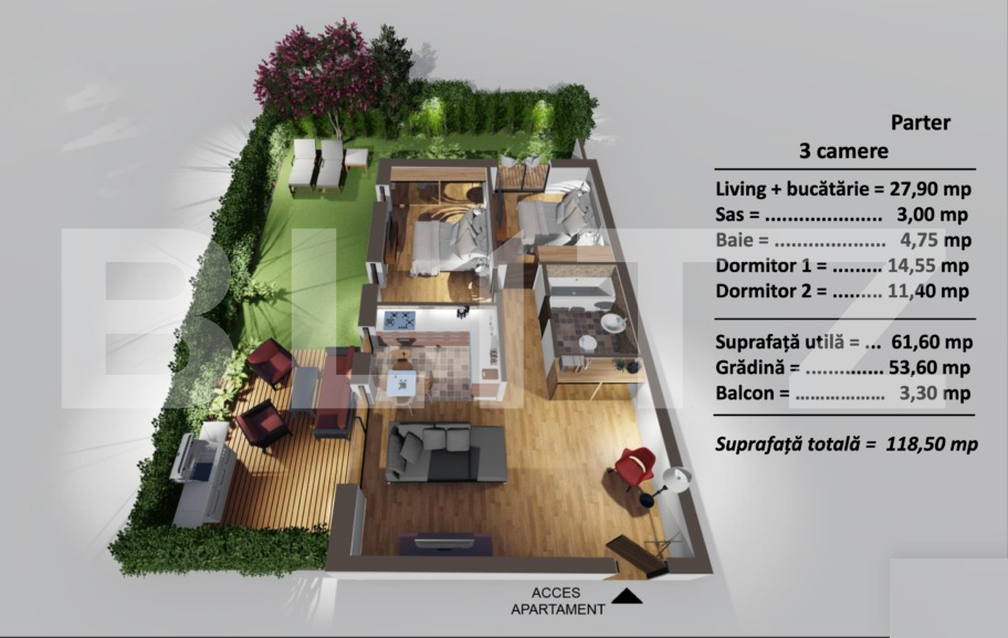 Suprafață utilă: 61.6 mp