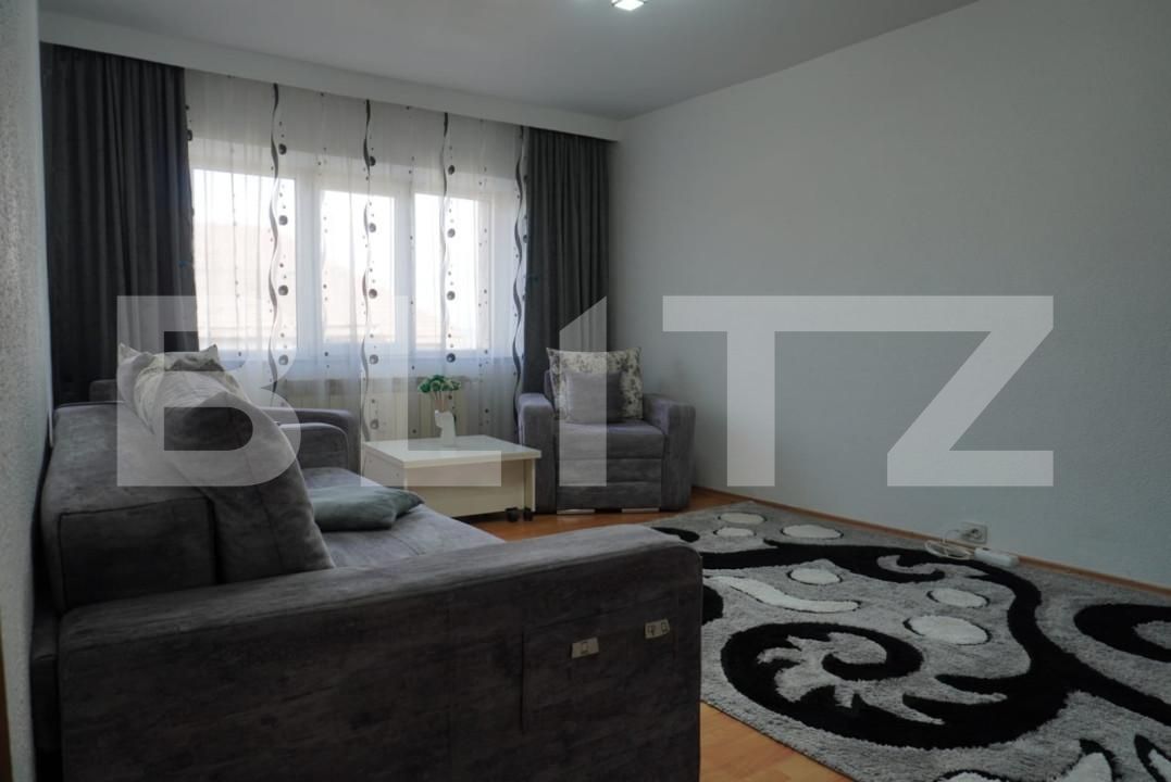 Apartamentul vine complet mobilat, cu excepția electrocasnicelor și a mobilei din sufragerie. Centrala termică îți va asigura căldura pe timpul iernii, în timp ce geamurile termopan păstrează un mediu liniștit și izolat fonic. Ușa metalică oferă securitate, astfel încât să te simți mereu în siguranță în propria casă.
