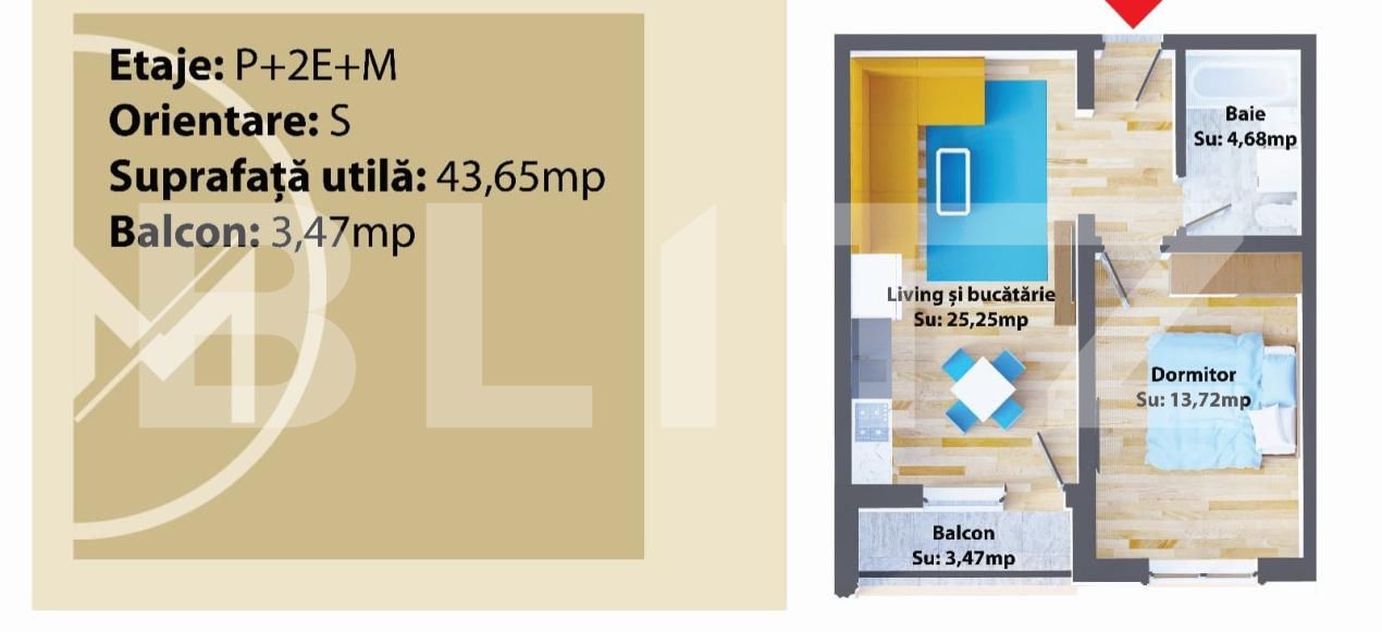 Suprafață utilă: 43.65 mp