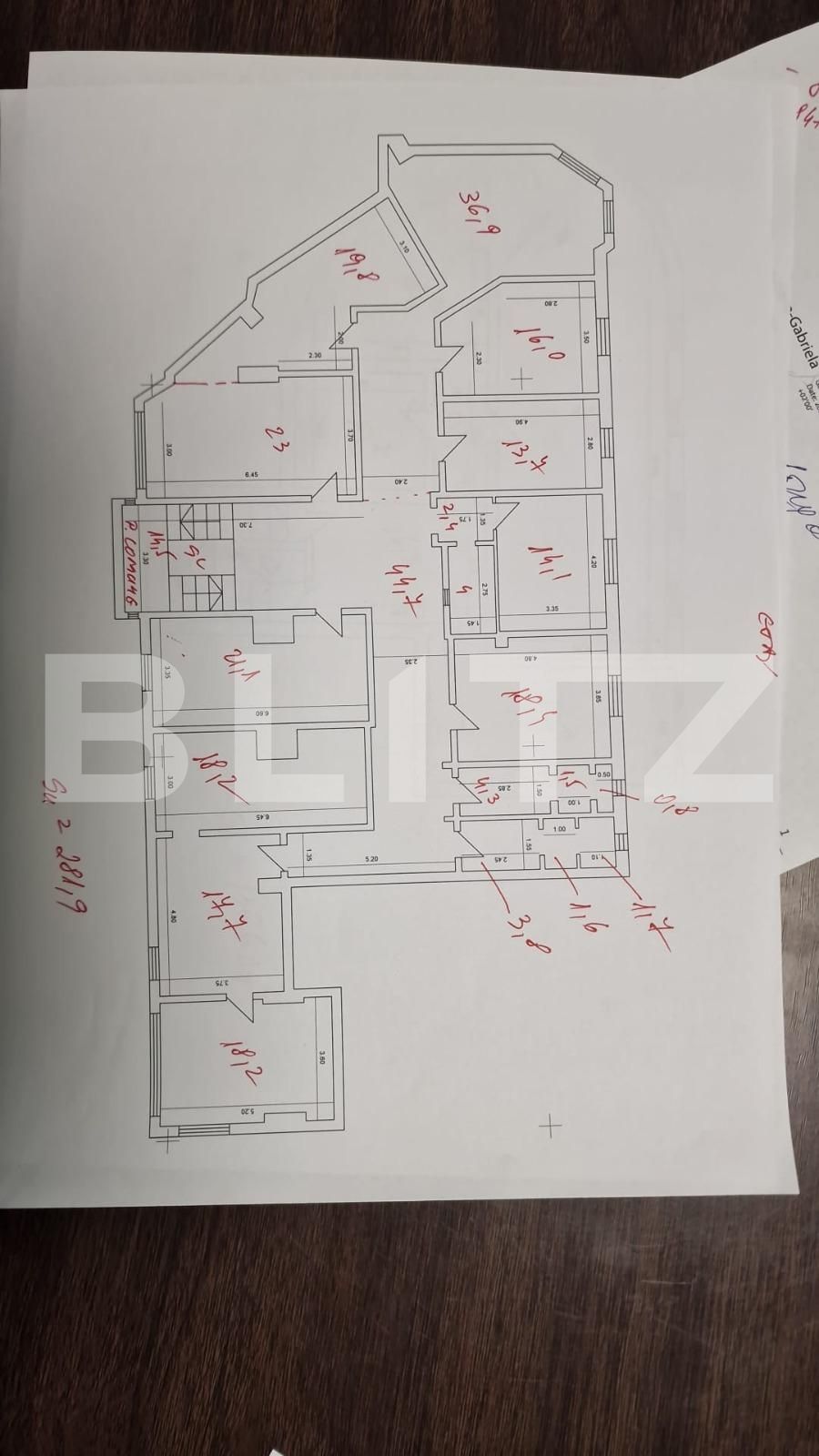 etaj 1 - spatiu comercial compartimentat: 12 camere plus 2 grupuri sanitare ,