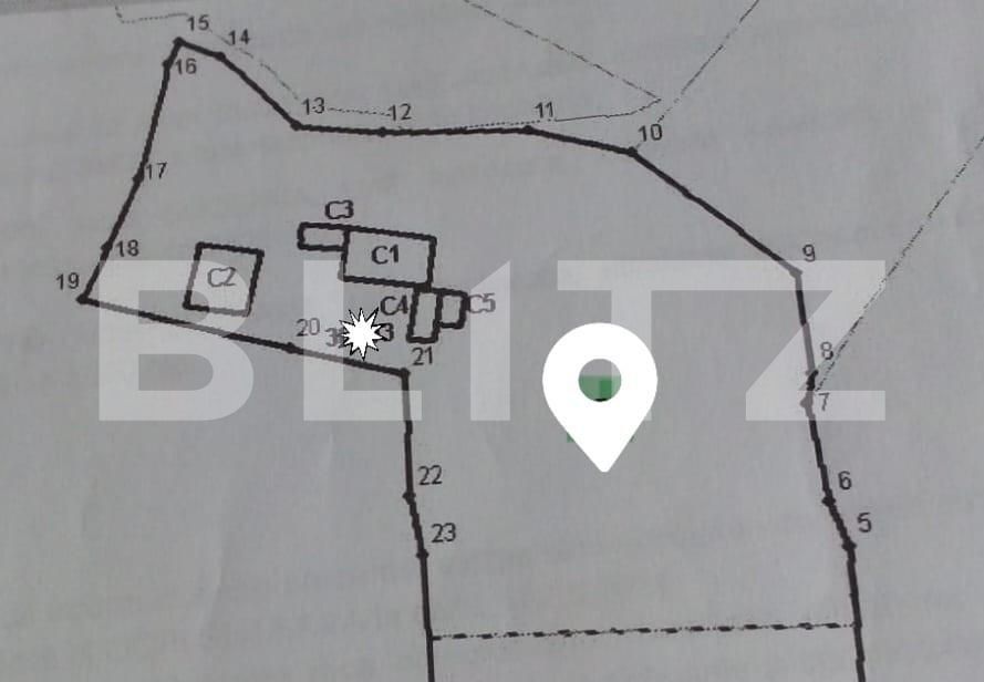 Mențiune: pe teren exista construcții: casă nouă construită în urmă cu 7 ani plus 2 anexe.