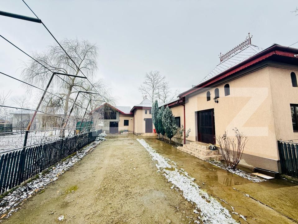 Un avantaj important al proprietății îl reprezintă clădirea situată la stradă, utilizată în prezent ca magazin alimentar funcțional, cu vad comercial format și acces facil pentru clienți. Aceasta oferă posibilitatea continuării activității existente sau utilizării ca spațiu comercial, birou sau alt tip de afacere, în funcție de nevoile viitorului proprietar.