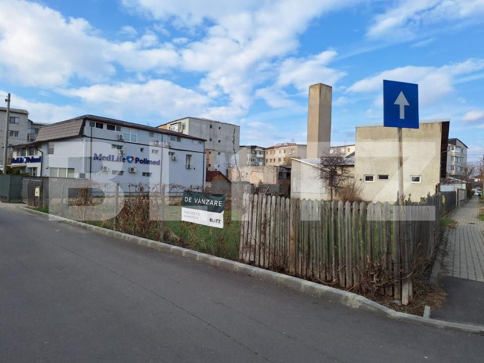 Blitz va ofera spre vanzare un teren intravilan de 604 mp pentru investitie imobiliara in vederea construirii unui spatiu locativ pe teren plat , situat in zona centrala, in apropierea pietei 1 mai langa clinica Polimed . Terenul are forma dreptunghiulara cu fronturi de 30 m si 17,74 m , are acces la drum pe doua laturi. Utilitațile sunt la limita proprietatii .