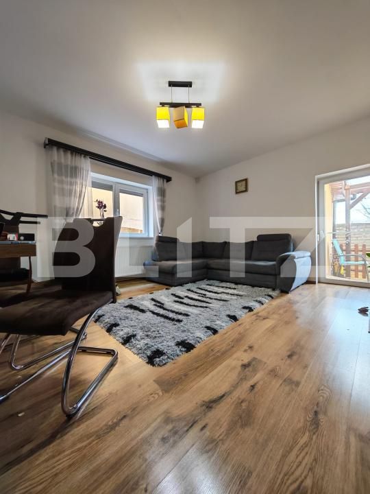 living închis, luminos, cu ieșire pe terasa din spate