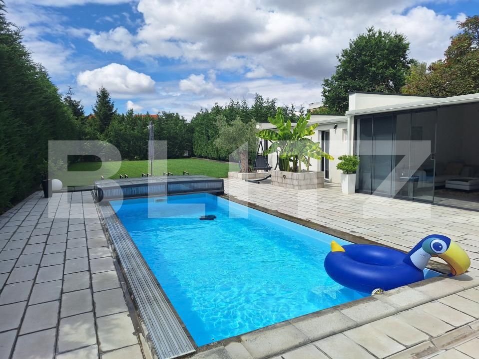 În curtea mare, vă așteaptă o Casă a Piscinei separată, o adevărată extensie a casei principale. Cu un living și o bucătărie open-space complet mobilate și utilate, acest spațiu poate deveni locul perfect pentru a petrece momente de neprețuit, alături de familie sau prieteni.