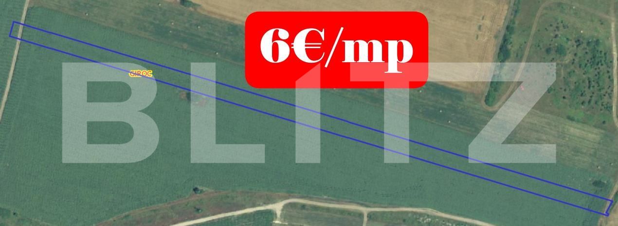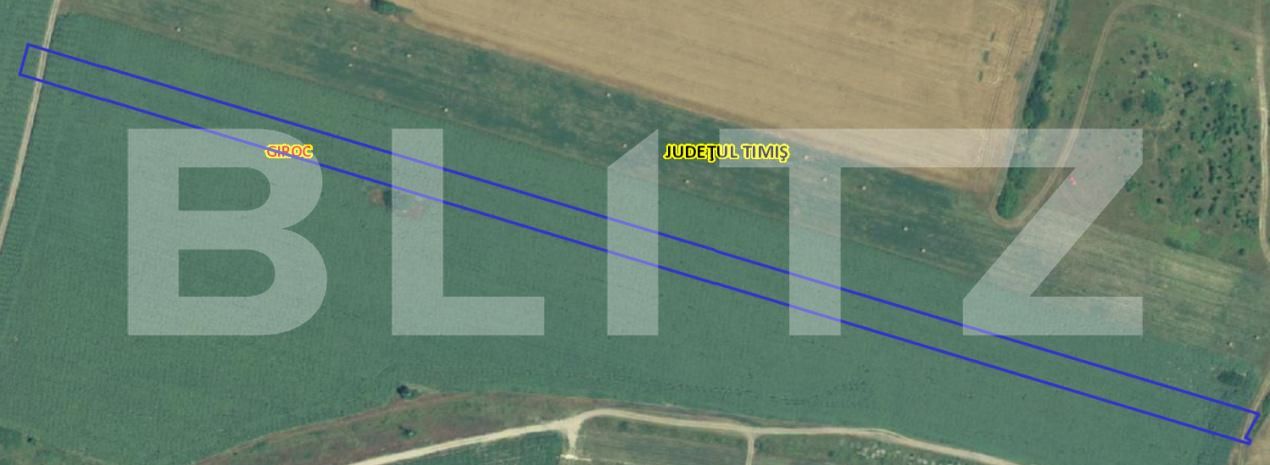 BLITZ va propune spre vânzare un teren extravilan in localitatea Giroc, având o suprafață de 10000 mp, situat în Giroc, județul Timiș. Pret 6e/mp Caracteristici principale: Suprafață: 10000 mp Categorie: teren extravilan agricol Fronturi : 15 metri Destinație: ideal pentru investiție Localizare: aproape de padurea Giroc, raul Timis, Amplasat într-o zonă mixtă, cu spații de agrement și zone cu terenuri cultivate.