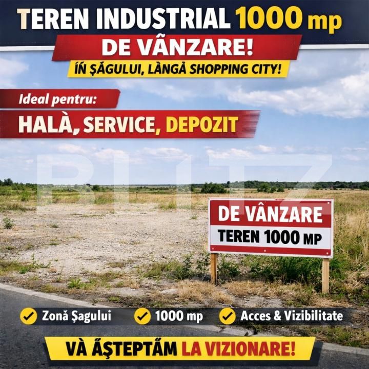 Blitz vă oferă spre vânzare un teren industrial de 1000 mp în zona Șagului, lângă Shopping City! Terenul este ideal pentru: -construcția unei hale -service auto -depozit sau alte activități industriale Suprafață: 1000 mp Locație: Șagului, zona Shopping City – acces facil și vizibilitate bună Pentru mai multe detalii, vă așteptăm la vizionare! Cod ofertă / ID BLITZ: P163974