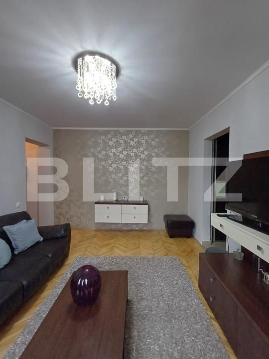 Blitz ofera la vanzare apartament semidecomandat cu 3 camere in Turda, zona Micro II. Acesta este situat la etajul 2 al unui imobil cu 4 nivele. Blocul este din caramida si este izolat la exterior. Suprafata utila este de 60 mp, compartimentarea se prezinta astfel: hol intrare, bucatarie spatioasa complet mobilata si utilata, living, 2 dormitoare, hol cu spatiu de depozitare, 1 baie cu geam, 1 balcon inchis. Apartamentul a fost recent renovat si se preda complet mobilat si utilat, asa cum apare in fotografii. Dispune de centrala proprie, geamuri termopan, parchet din lemn, finisaje de calitate. Imobilul este situat intr-o zona linistita cu spatiu verde, alei pietonale si zona de joaca pentru copii. De mentionat ca in proximiatea apartamentului avem scoala, magazine, farmacie, mijloace de transport in comun. Pentru mai multe detalii programeaza o vizionare!