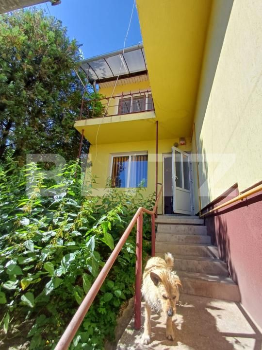 Casa 2: construita in 1990 cu regim de inaltime D+P+E plus pod, are 111 mp amprenta la sol și 182 mp utili; la demisol regasim un garaj auto de 25 mp; la parter avem 1 camera, 1 bucatarie cu camara, o baie, un hol spatios si casa scarii. Din bucatarie exista acces spre o terasa de circa 27 mp. La etaj avem 3 camere, o baie, o debara, un hol si casa scarii. Este izolata pe exterior cu polistiren de 10 cm, aproate toate geamurile sunt termopan, Incalzirea se face in bucatarie cu soba de teracota pe gaz, la etaj cu convector si exista si instalatie trasa pentru centrala pe gaz. In camere este parchet din lemn masiv. La etaj avem acces pe o terasa cu priveliste panoramica.
